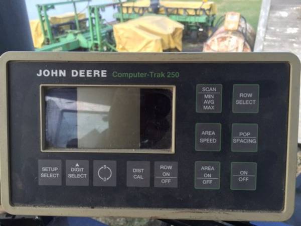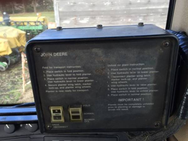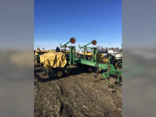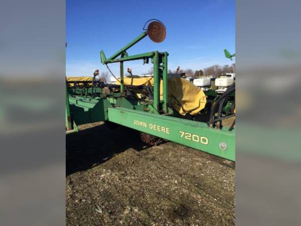 Stock # 777000008, John Deere 7200 Planter, Front Fold, 12 Row 30 Inch, No Till Coulters, Residue Manager Combo, Computer Trak 250 Population Monitor, Adjustable Heavy Duty Downpressure Springs, Insecticide, Vacuum Meter, ProMax 40 Seed Disk with Singulator, Vinyl Hopper Covers, 1 Bushel Poly Box Extensions# Rows Wide: 12; Row Spacing: 30, in.; Row Markers; Chemical Hopper: Insect; Drive: Standard; Hitch: 3 Point; Metering System: Vacuum; Population Monitor; Tool Bar: Front Fold; No-till Coulters; Down Pressure Spring; Trash Wheels; Seed Hopper: Row Unit