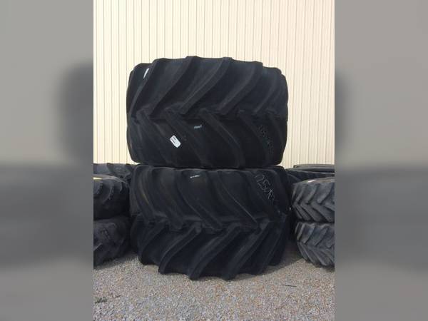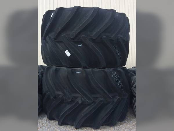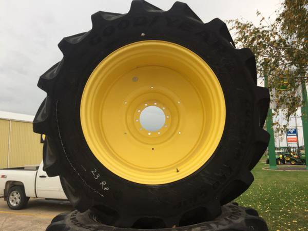 Fits John Deere Class 6 and Larger 50/60/70 and S Series Combines, Goodyear 1250/35R46, Custom Flo Grip LSW Radials, Reduced Road Lope, Reduced Power Hop in Field, Reduced Soil Compaction, 50% Larger than 76×50’s Bias Tires, Pair up with 710/60R30’s, $32000 for the Complete Set of 4 Tires and WheelsFront Tire/Track Size: 1250/35/R46, Cond.: 100%L, 100%R