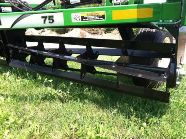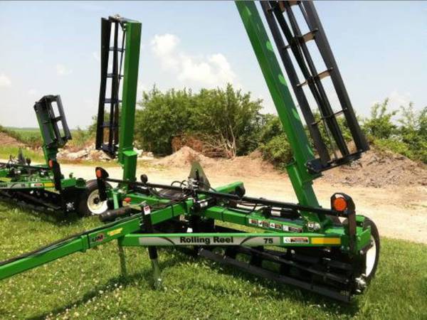 Stock # 17594, Unverferth 2501 rolling reel leveler, 25′ working width, Hydraulic wing fold, 12′ Base, 6.5ft Wings, 9.5Lx15 8ply tires, Dual wheel kit, Lights, Dual hoses, Pull type, Green