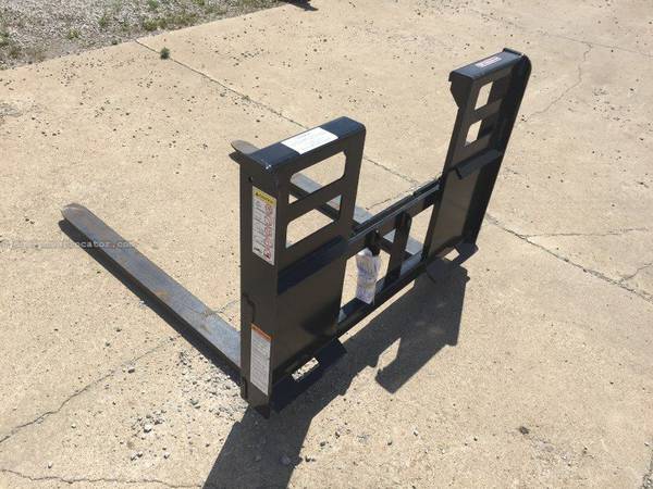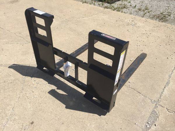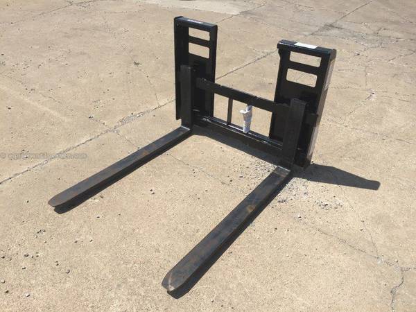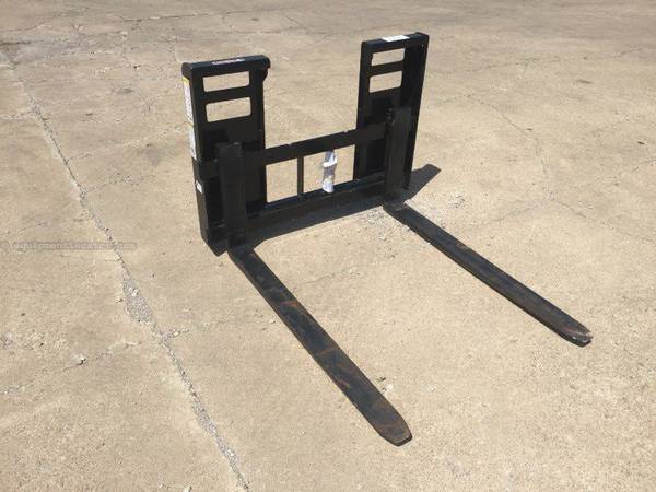 Stock # 251263, Worksaver pallet forks, Skid steer mount, Walk through design, 4000lb capacity, 48″ tines